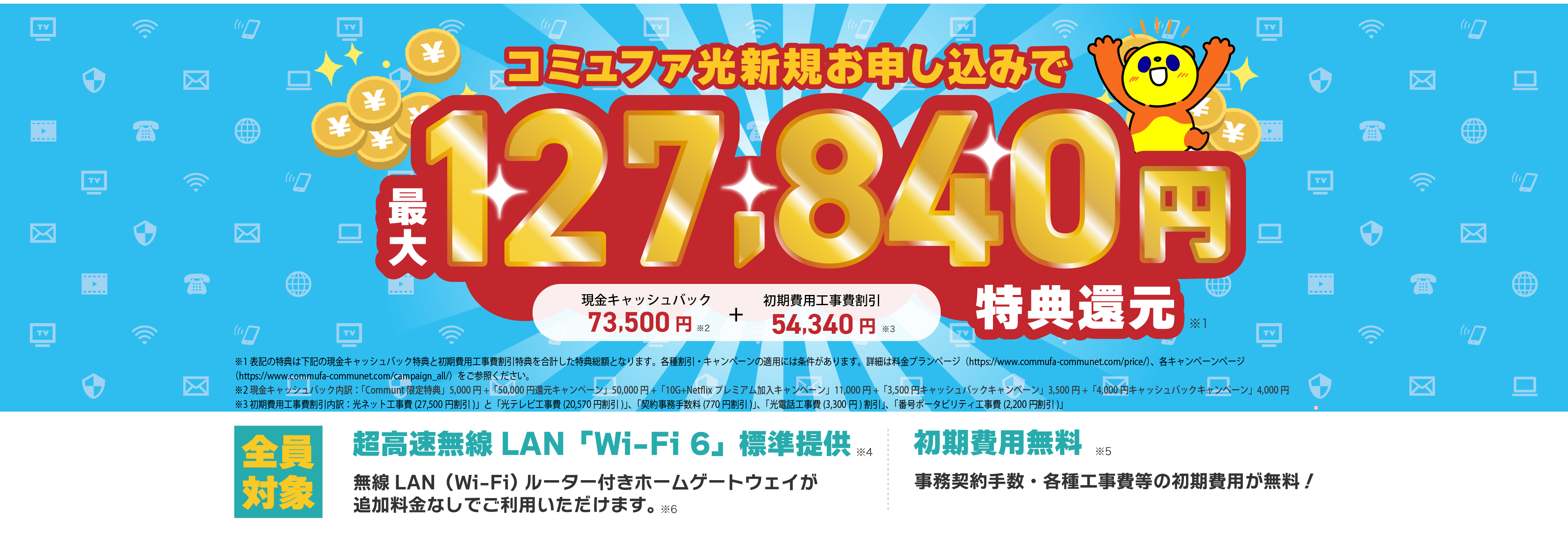 コミュファ光 お申し込みサイト”Communet” 当サイトからの新規お申し込みで最大127,840円キャッシュバックキャンペーン実施中!