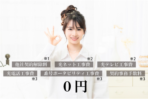 おトクな特典やキャンペーン適用で事務手数料や基本工事費が無料。さらに宅内外工事を同時に実施して、1度の訪問で開通可能。 ※7