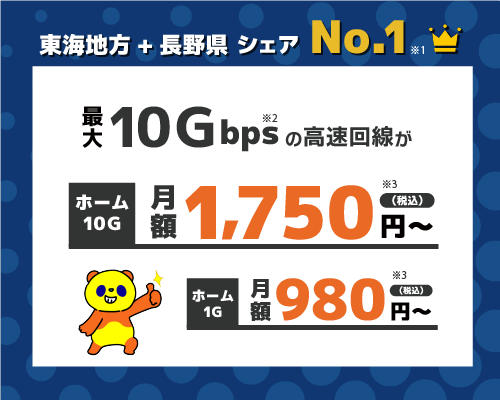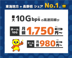 ※1 中部エリアにおける光回線サービスブランド別契約数シェア。MM総研「ブロードバンド回線事業者の加入件数調査」(2025年3月末時点)